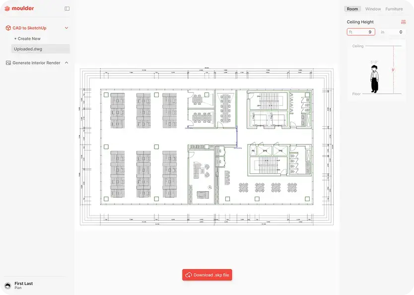 도면(.dwg)만 업로드 하면 벡터기반의 정확한 스케치업(.skp) 파일을 다운로드 할 수 있습니다.