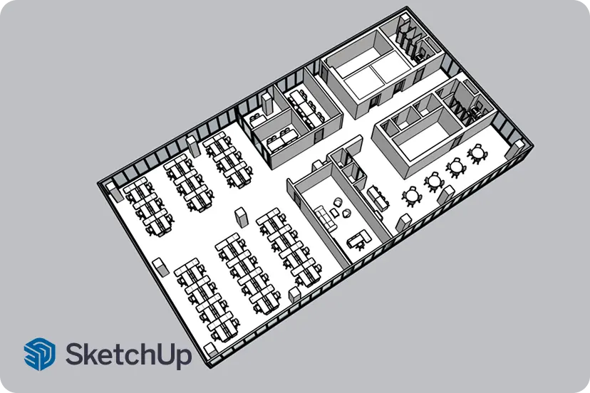 업로드한 캐드 파일은 자동으로 모델링되어 스케치업 파일 형식으로 변환되며, 자유로운 수정도 가능합니다.